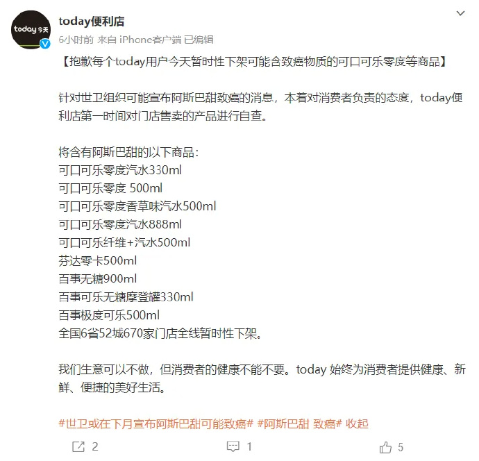 在六月底对可能含致癌物质的可口可乐零度等商品