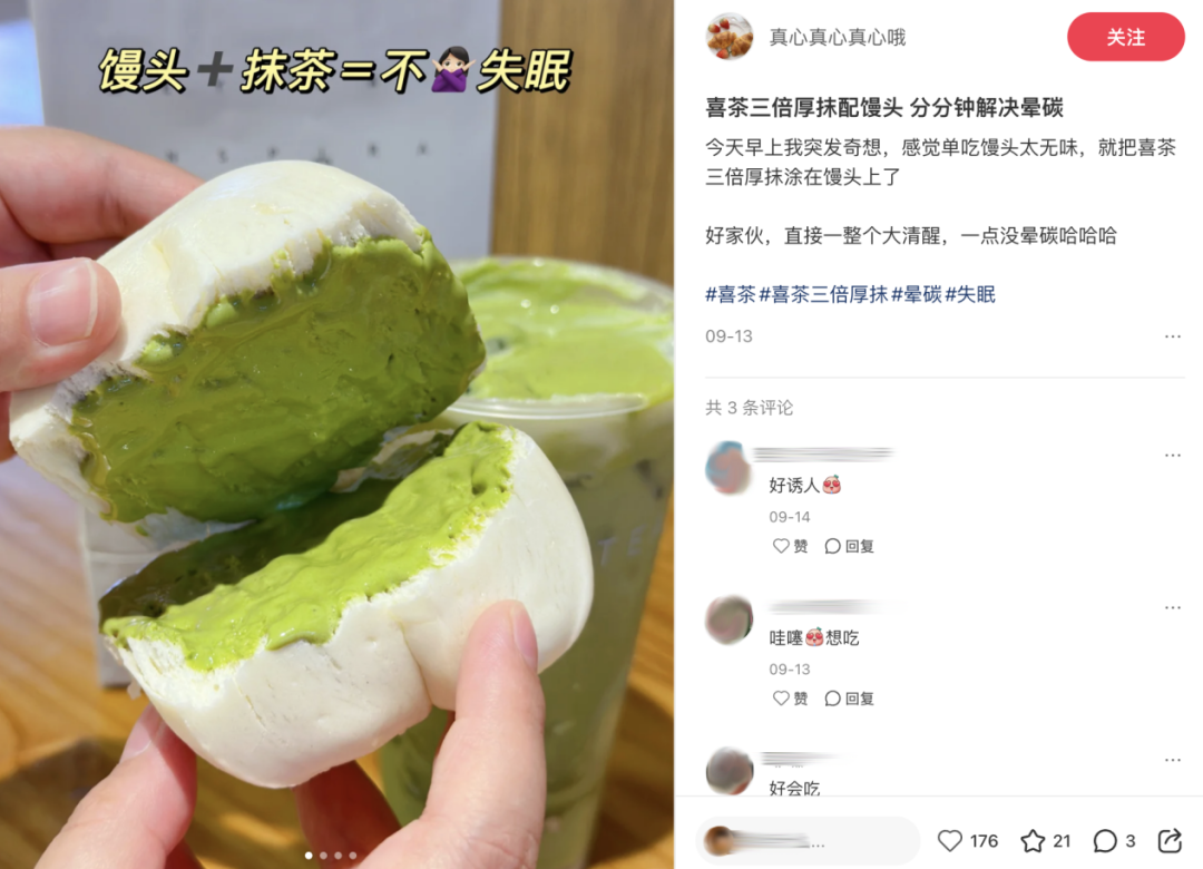 有人拿抹茶蘸山东大馒头,一口下去专治晕碳和失眠,妈妈再也不用担心我白天睡不醒、晚上睡不着;