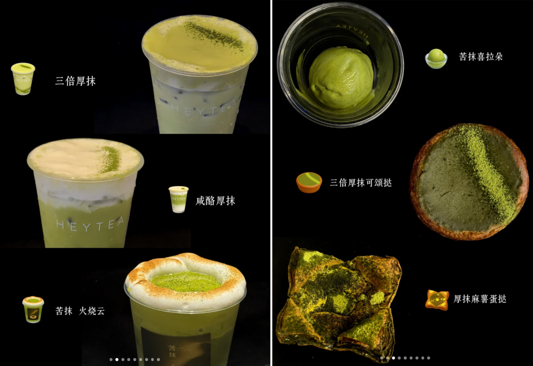 就这样,凭借着自己卷自己的毅力,喜茶几乎把抹茶这门学问钻研到了极致:从饮品到甜点,从调酒到入菜,人类对抹茶的开发程度,在它面前恐怕还不到百分之一;再从东亚到欧美,从产品创新到文化输出,让海外的抹门信徒也是见了新世面,原来中国抹茶还能这么玩,原来人类的脑洞还能这么大。