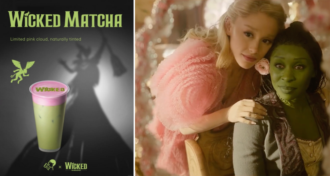 就连最近推出的万圣节限定款,喜茶也不忘继续邪修“邪恶抹茶”「Wicked Matcha」,经典的抹茶绿配上加了火龙果的粉色柚子奶盖,把联名IP“魔法坏女巫”里最好嗑的粉绿女巫CP一口气塞进同一个杯子里,“我们是密不可分的天才女友,也是不可战胜的女巫”。