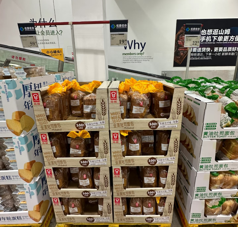 嘉顿的东莞工厂向来有着“广东人的山姆”之称,许多人没等开门就到现场等着扫货。实际嘉顿已走进真正的山姆会员店,其亚麻籽全麦吐司、厚切黄油吐司,是山姆会员常晒的囤货。