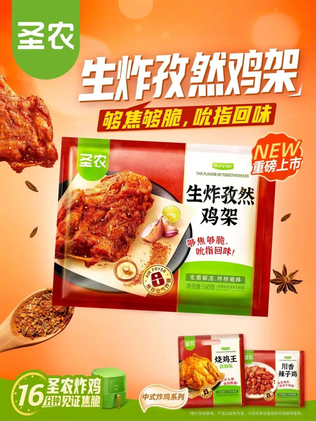 在产品创新方面,2024年圣农食品推出了生炸孜然鸡架,迎合了当下爆火的生炸鸡架发展趋势;新开发空气炸锅系列食品、微波系列食品,打造出脆皮炸翅、霸气手枪腿、嘟嘟翅3个销售额过亿的单品。