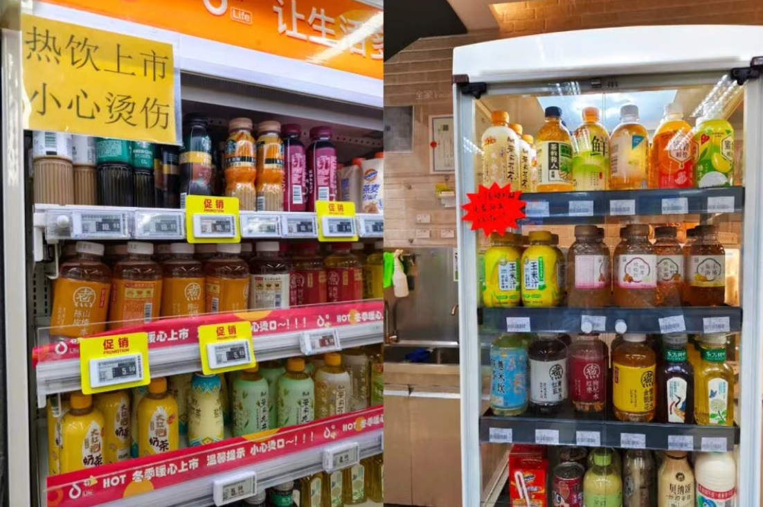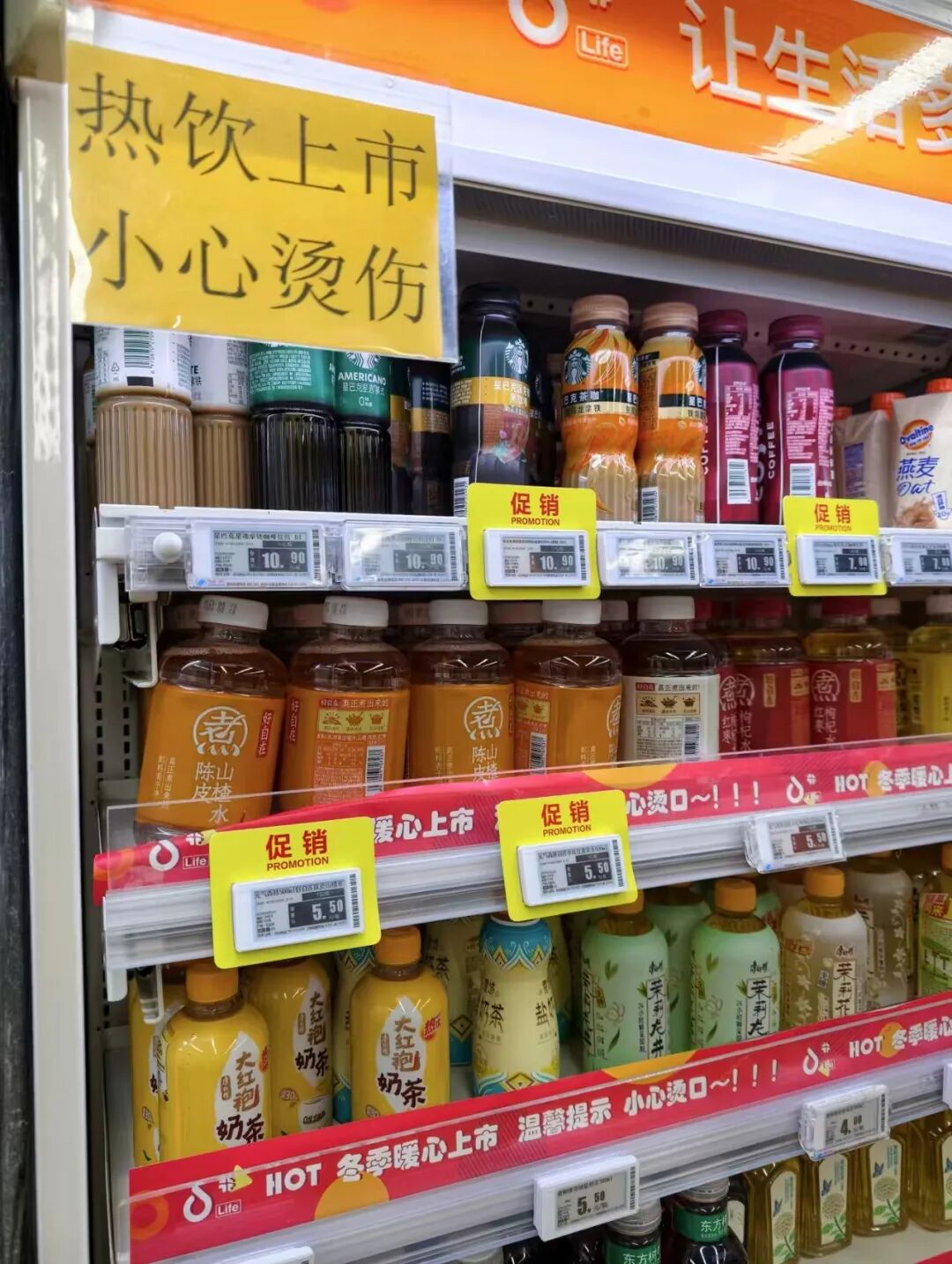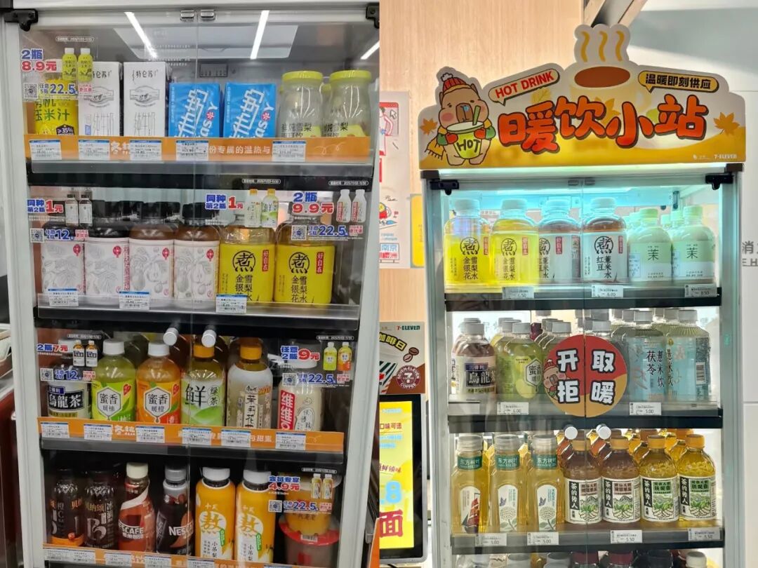除了每年都有的常规品类奶茶、咖啡以外,近两年与往年最大的变化是:暖柜中的养生水、无糖茶、谷物饮料等品类开始占据大面积陈列。