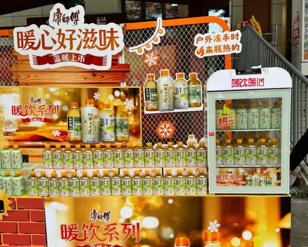 据了解,此次康师傅还通过线上话题传播与线下体验互动,让暖饮快速走进消费者视野。线上发起相关讨论话题;线下在核心商圈设置“暖饮补给站”,提供免费试喝、扫码领券等活动,增强用户体验。