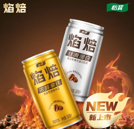 几乎同一时间,怡宝官宣推出新品焰焙小燃罐,主打180mL小巧罐身,在享受美味的同时可以轻松携带。采用源自巴西的咖啡豆和新西兰进口奶源,风味更加平衡,符合多种消费场景。