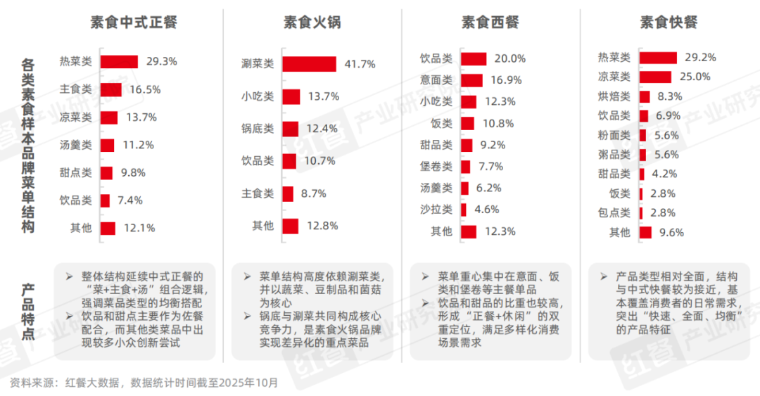 整体来看,不同素食细分类型的餐厅既保留各自的餐饮逻辑,又共同体现出素食理念在产品结构上的创新和细分化发展特征。