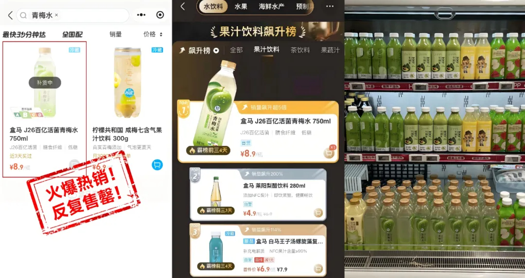 此次推出的“百亿活菌青梅水”,正是这一逻辑的集中体现:产品不仅以“百亿活菌、短保冷鲜、低糖0脂”夯实健康根基,更通过“青梅竹马”这一自带情感记忆与社交热度的创意,成功建立与消费者的情绪联结,呼应了盒马对“健康”与“悦己”融合的深刻洞察。