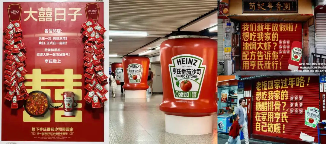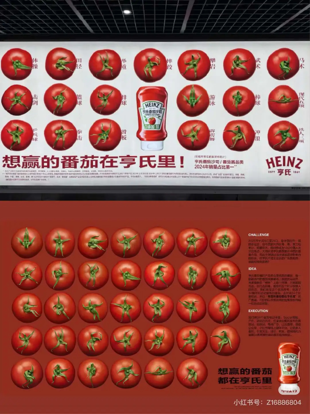 亨氏Dana:是的,只是角度的问题。我在购买广告点位之前去现场看过情况,那个位置人流量非常大,灯光比较暗,通道比较窄,如果放大红底的图片,确实绿色的番茄梗会更明显,但我们还是希望品牌优先,让大家能看到番茄,进而想到番茄酱,所以最终选了白色底。