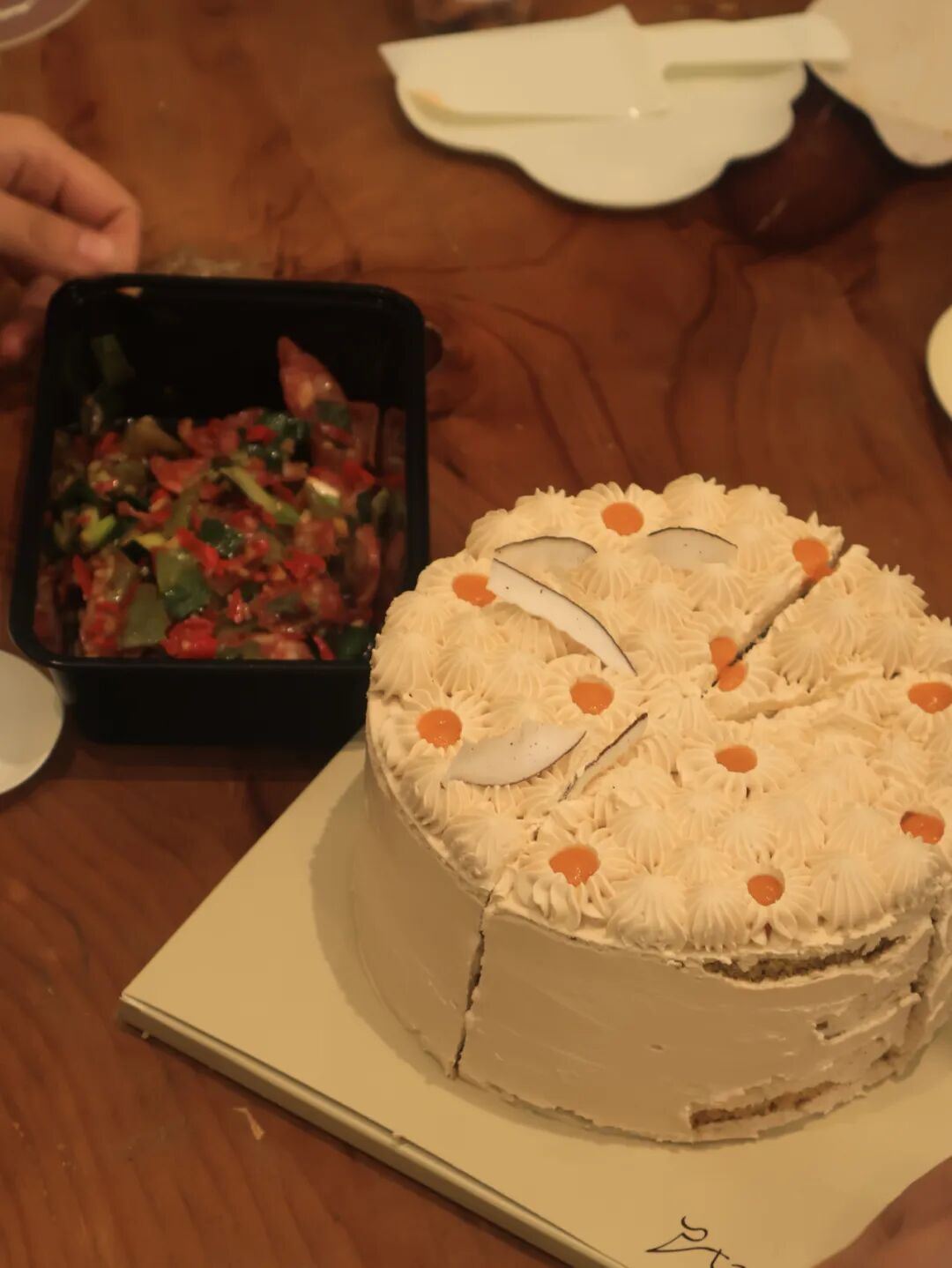 用3个小时吃了几乎一整年分量的蛋糕,说不腻是假的。当品尝到第五六款时,甜腻感逐渐累积,大家都有点吃不动了。没想到,一位参与者从包里拿出了中午打包的炒腊肉,咸香的气息瞬间“解救”了被糖分包围的众人。
