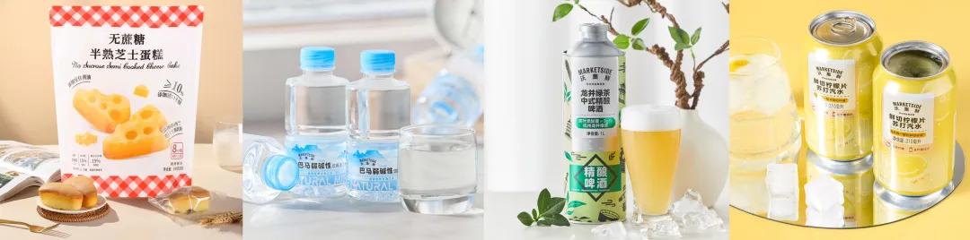 其二,是“差异化选品”的延伸。 沃集鲜一方面复刻了如黑松露火腿苏打饼干、半熟芝士蛋糕、巴马弱碱性天然矿泉水等部分山姆热门单品;另一方面,其选品视野更广,覆盖了苹果干、茶啤、柠檬沙瓦、冷冻汉堡等新兴热门品类,以及无花果亚麻籽水、苹果黄芪麦冬水、石斛雪梨海底椰等多款自主拼配的“中式养生水”,展现出更贴近本土需求的产品创新力。