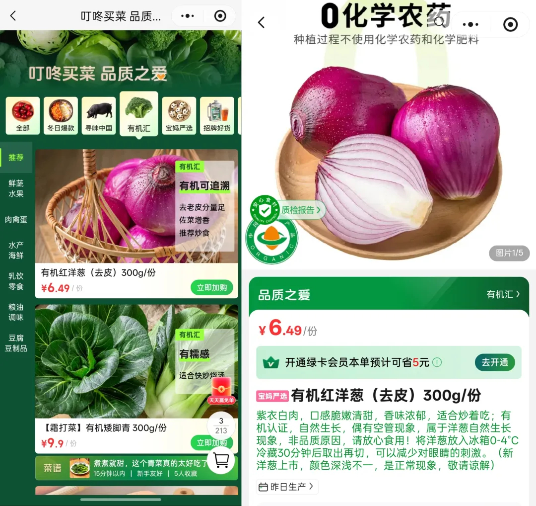 “透明叙事”成为品质信任的核心。消费者关注的已不止于价格和成分表,更延伸到“从哪来”与“怎么来”的全链路叙事。谁能在信息透明上建立更深信任,谁就能占据心智高地。以叮咚买菜为例,其APP可直接查阅农产品的质检报告,实现了从源头到餐桌的全程可溯。