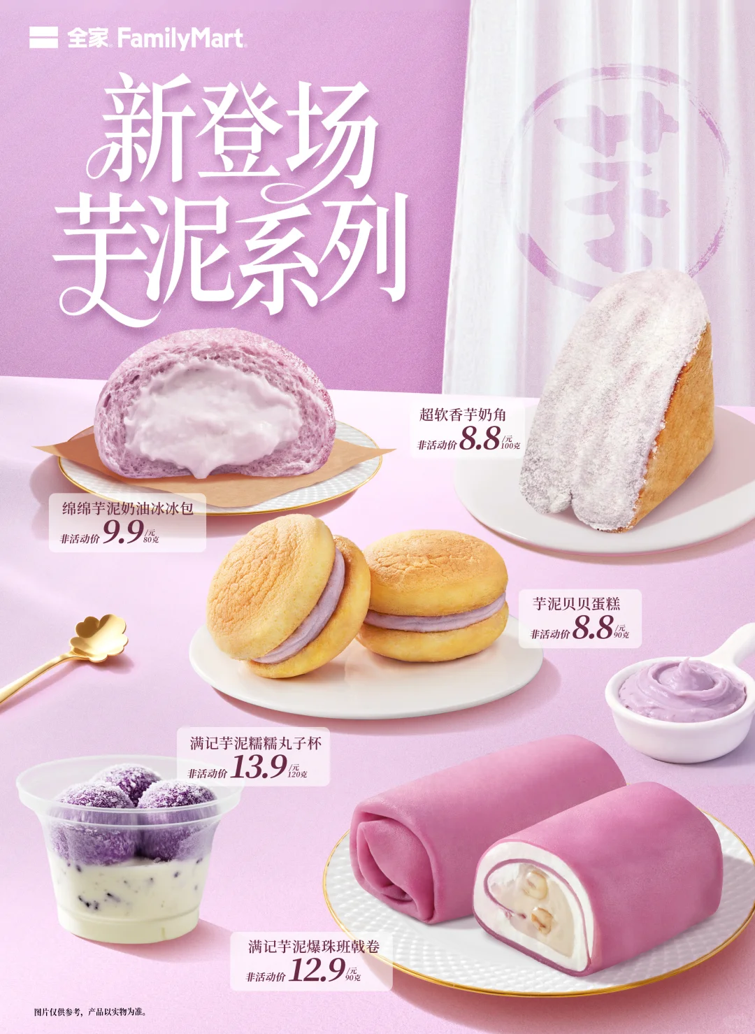 它的出场方式也更丰富:芋头可颂、芋泥面包、芋香奶盖、芋头奶油派……温柔的奶紫色占据了整个视线。你会发现,芋头不再只是夹馅,而是成了“风味主角”。