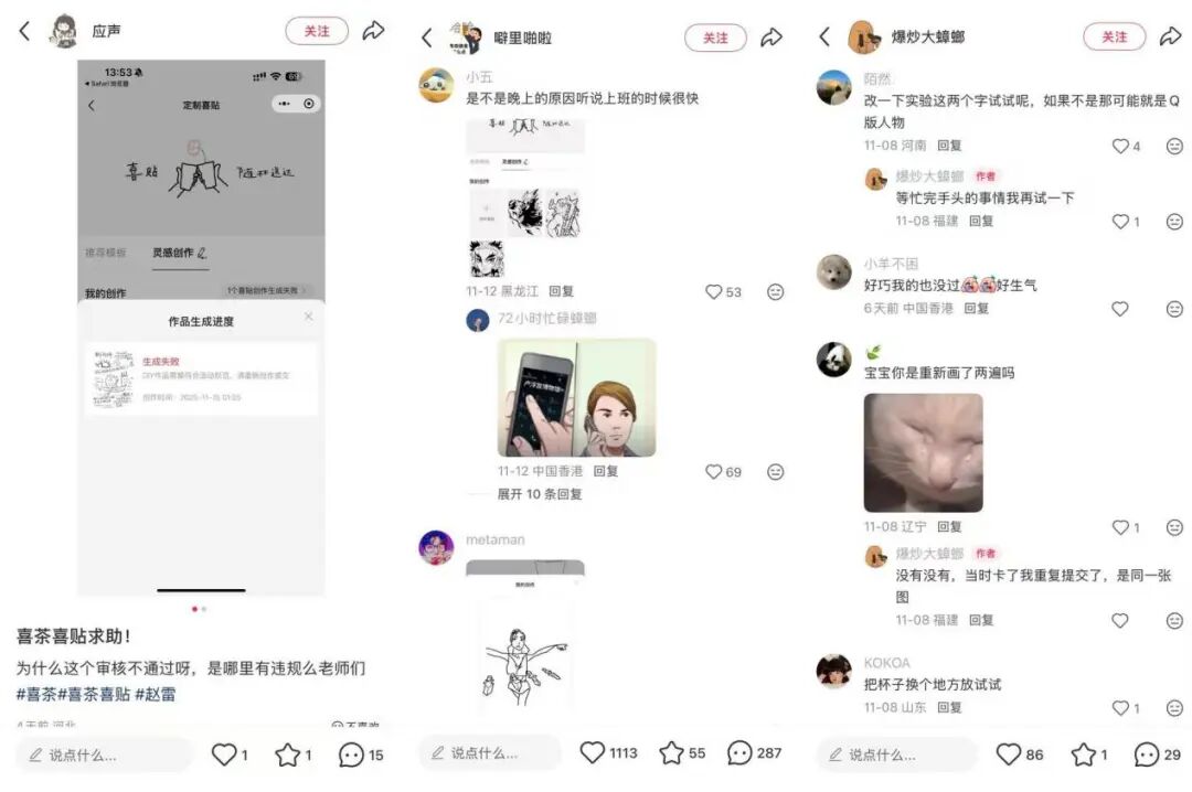 网友一边吐槽审核标准难猜,一边乐此不疲地分享经验,掀起一股互助风,让评论区变成了大型教学现场。“去掉文字试试”“把主体画大一点”“去掉多余的装饰物”,相关帖子下方既有热心留言,也有吐槽过审的随机性。
