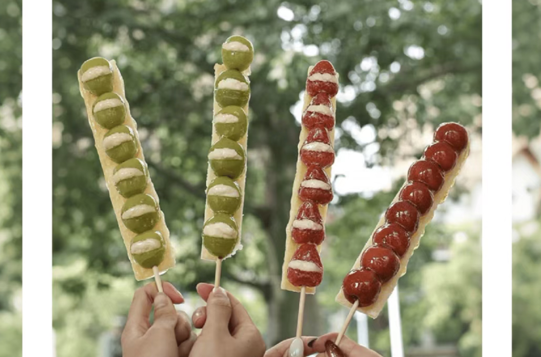 正如前面提到的,一开始奶皮子糖葫芦因为青提、草莓和奶皮子搭配的颜值,在抖音、小红书等平台上爆火,吸引了不少人去排队打卡。