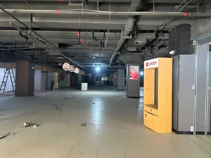 目前原超市一楼地面入口处被围栏紧密遮挡,但看不到任何朴朴超市入驻的相关图文信息,也无朴朴超市的品牌标识。经与商场工作人员确认,朴朴超市确实已租下该店面,但装修尚未启动,正式开业仍需时日。