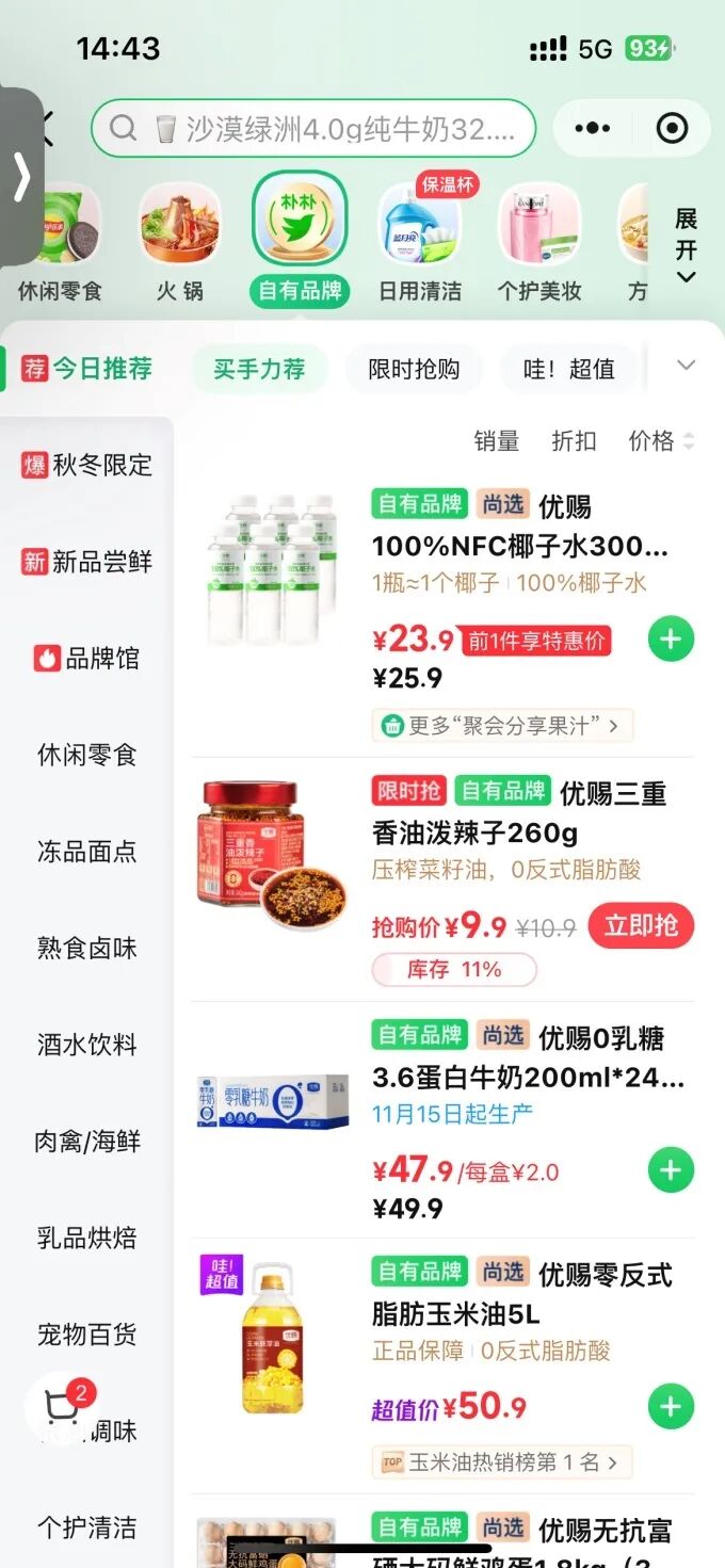 同时,自有品牌业务快速发展,形成以“优赐”为核心的“1+N”品牌矩阵,在售SKU近1000个。通过直连工厂、优化供应链,朴朴正努力将自有品牌打造成其利润增长的核心引擎,为多业态扩张提供产品支撑。