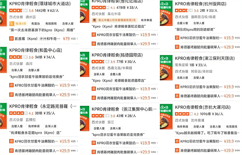KPRO餐厅在北上广深等一线城市首先试点推行,在大众点评APP上搜索发现,北京KPRO餐厅位北京环球影城内、上海KPRO餐厅位于地铁虹桥路站、杭州KPRO餐厅位于京杭大运河附近——从KPRO餐厅的选址上,也能看出大多是客流量较大的商业聚集区域。