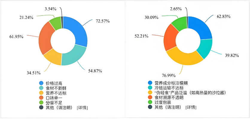 新京报社健康和消费新闻部联合北京烹饪协会发起的“轻食消费行为及认知”问卷调查结果显示,72.57%的受访消费者认为目前轻食“价格过高”;76.99%的受访消费者表示,高热量的“伪轻食”产品泛滥,影响了自己选择轻食产品。