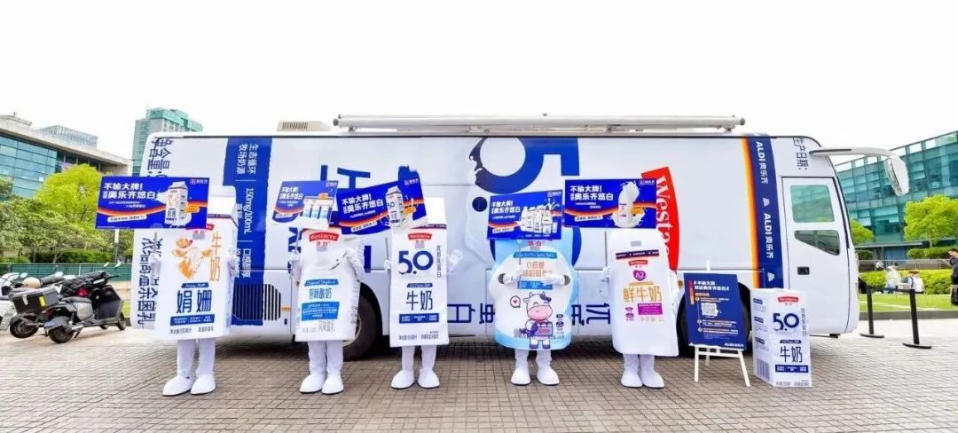 奥乐齐则采用“节奏化、组合式传播”策略,通过持续输出出圈内容(静安地铁站巨物果蔬、雪姨系列表情包、WOW主题曲、悠白巨盒牛奶等)保持市场热度。