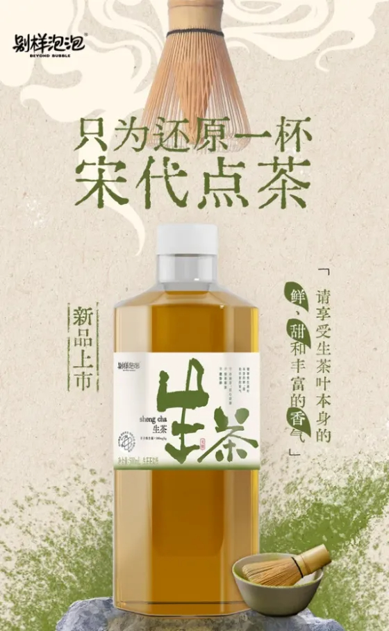 在此背景下,我们注意到,一个成立于2022年的新锐品牌——别样泡泡,凭借大单品“生茶”,短短两年实现年营收突破亿元,成为市场里的一抹亮色。