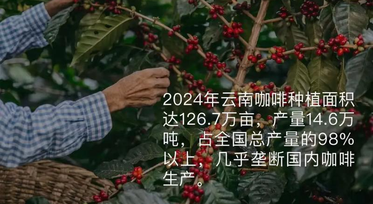 很多人不知道,中国 98% 的咖啡产自云南。2024 年,云南咖啡种植面积达 126.7 万亩、产量 14.6 万吨,几乎垄断国内生产 —— 但在很长一段时间里,这片被北回归线眷顾的土地,只收获了 “原料产地” 的身份:豆价被国际巨头压到每公斤不足 20 元,多数咖啡豆以 “匿名” 方式混入连锁品牌的拼配豆中,连包装上都不会出现 “云南” 二字。
