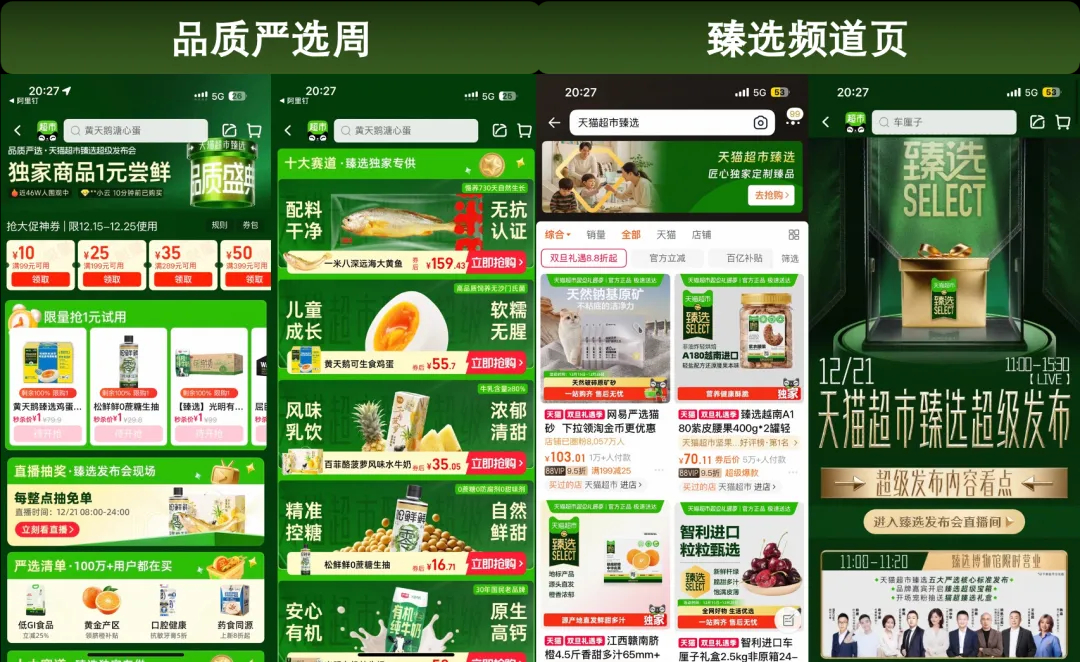 在这样的背景下,天猫超市升级推出自有品牌“臻选”,本质上是在为消费者承担更多筛选责任:通过平台能力,为用户降低决策成本,提供稳定的品质信任入口。