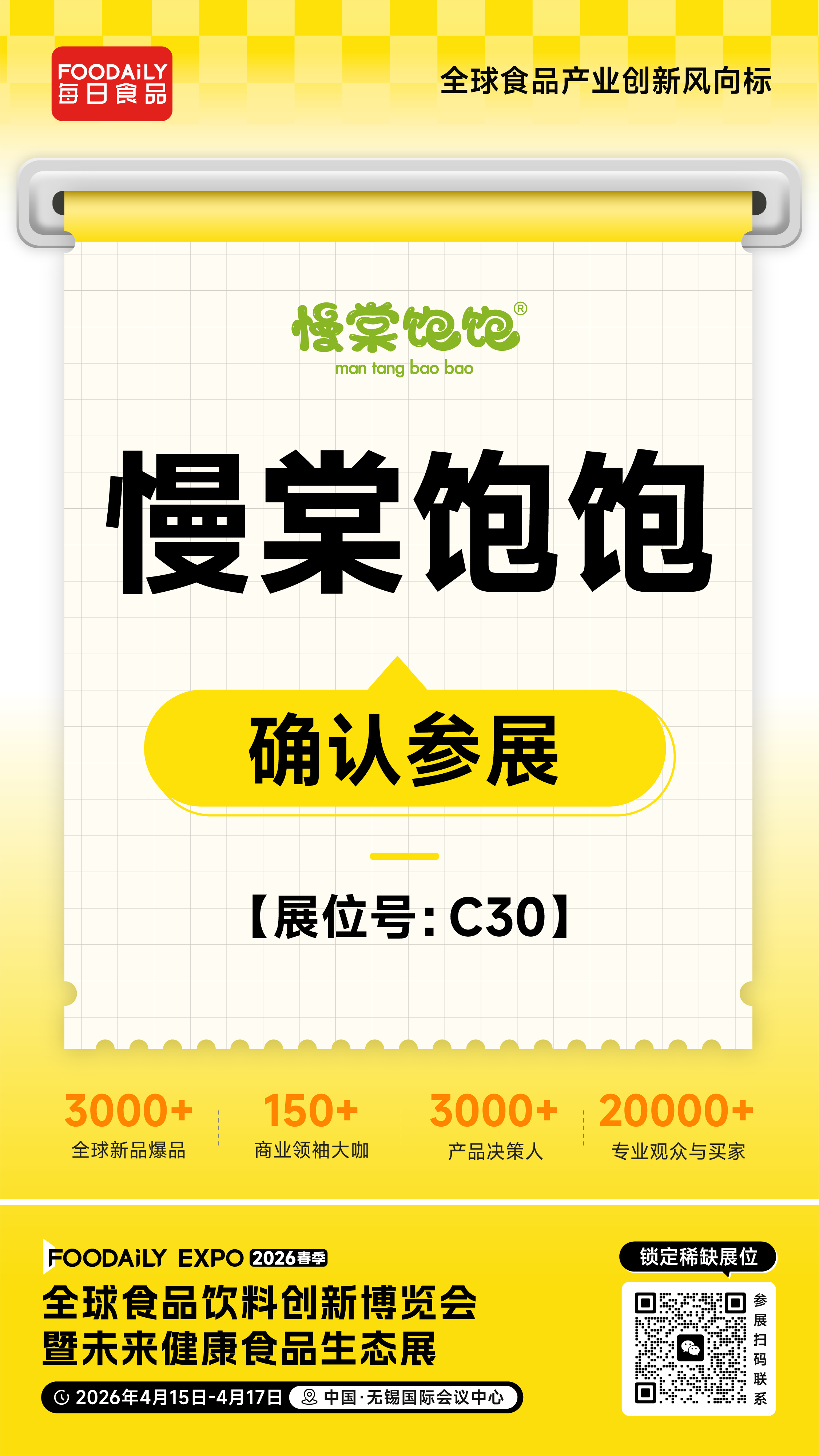 2026 Foodaily创新博览会,慢棠饱饱将携旗下健康零食矩阵亮相于无锡国际会议中心,C30展位,邀业界同仁共探健康食品创新路径,共启控糖零食新未来!