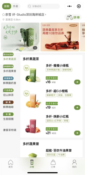 作为奈雪2026年核心战略落地的关键,奈雪 纤·Studio店独家上线6款「低GI&多纤」核心产品,涵盖多纤蔬果昔与低GI多纤果蔬茶两大品类,「更多纤维,更慢升糖」精准击中消费者对于健康慢升糖的需求。