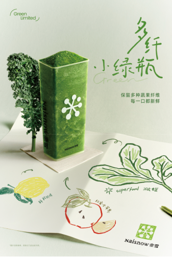 其中,“低GI&多纤果蔬茶系列”推出多纤·瘦瘦小绿瓶、多纤·超C小橙瓶、多纤·焕新小红瓶,通过科学食材搭配降低升糖指数,搭配奈雪经典茶底,实现“低GI慢升糖+蔬果纤维”双重buff,适配控糖人群日常需求。“多纤蔬果昔”系列包含超能·羽衣牛油果昔 、醒味·薄荷青苹果昔 、活力·姜黄凤梨果昔 ,采用鲜果鲜榨工艺,保留丰富蔬果纤维,主打“多种膳食纤维来源,一杯轻松充能”,羽衣甘蓝、牛油果等超级食材的加入,让健康属性可感可知。