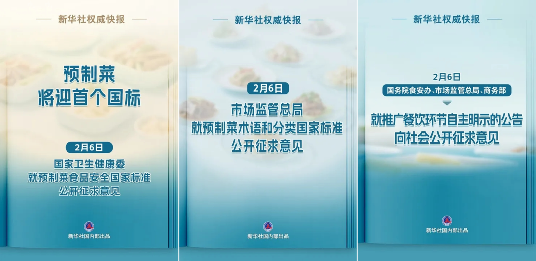 今日,国务院食安办等部门 对预制菜国家标准等公开征求意见。