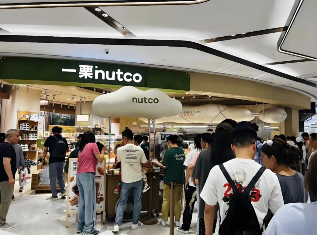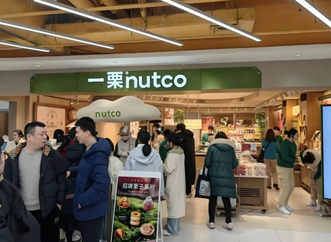 一栗NUT CO.的门店动线就很典型。《灵兽》在北京首店观察到,外场的现烤商品和低决策甜品主要承担引流和停留的作用,往里走才是更高利润的坚果、果干和零食区,用来承接客单提升。