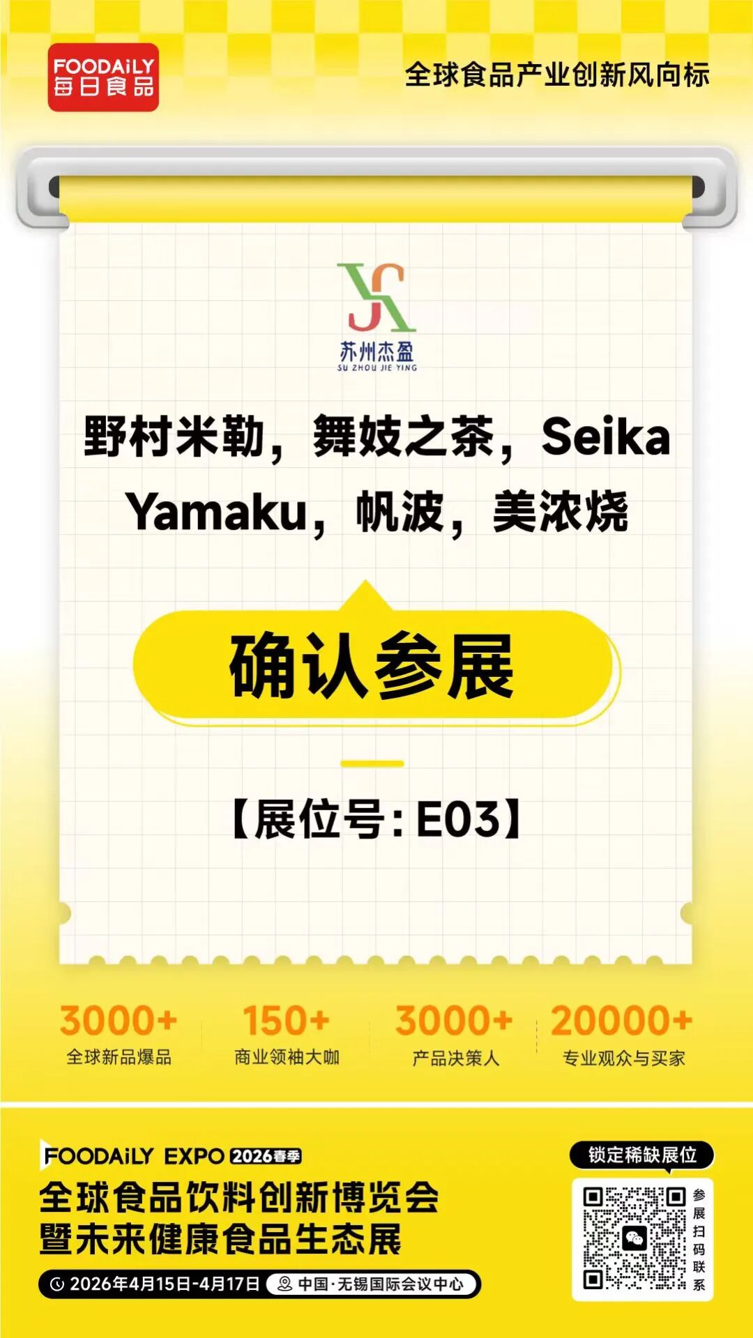 2026 Foodaily创新博览会,苏州杰盈将携旗下明星产品亮相无锡国际会议中心,E03展位,邀各界伙伴共探进口食品市场新机遇!
