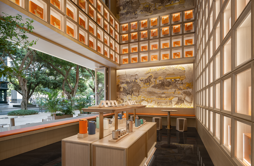 当天的采访,就是在八马的新型旗舰店“国茶馆”里进行的,店内大概600平方米,上下两层,对面就是平安金融中心,所以这里主要面向商务场景,9间茶室大小不一,装修风格也不尽相同:有的幽静典雅,有的端庄大气,还有一个可容纳十余人的会议室,以及一间可供用餐的包厢。