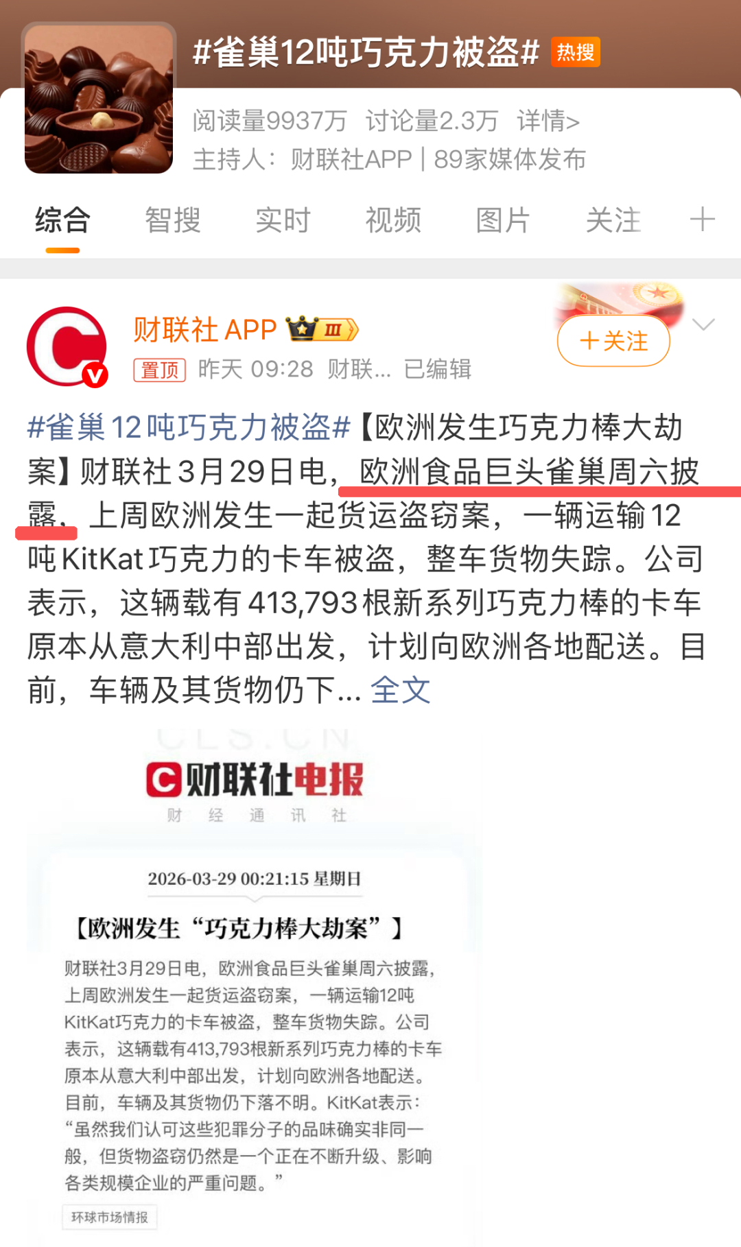 又成功把“雀巢12吨巧克力被盗”从社会新闻频道切换到了广告赛道: