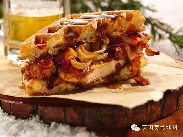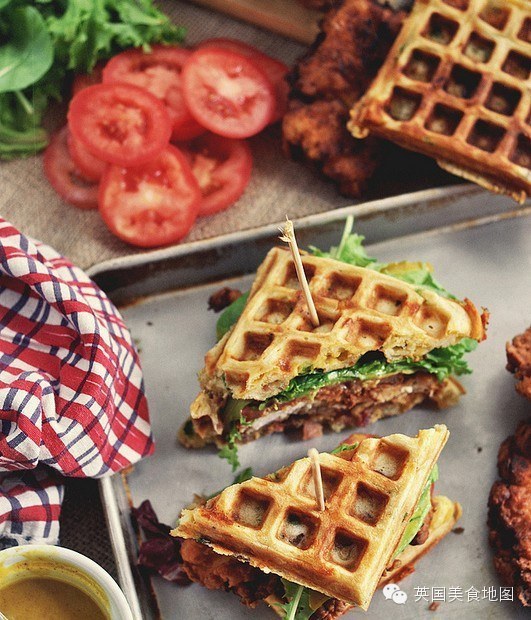 用鸡肉代替培根,做个鸡肉生菜华夫饼三明治