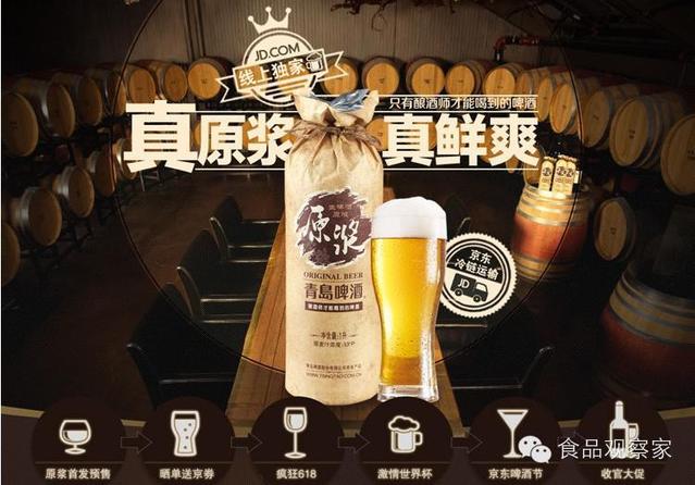 在言必称互联网思维的当下,在啤酒厂商兵家必争的夏季足球档期,互联网思维去做啤酒,能产生什么化学反应呢?上个周末,青岛啤酒和京东商城联手祭出的冷链送当日青啤原浆啤酒,让啤酒互联网化的概念更加生动,更有想象空间。