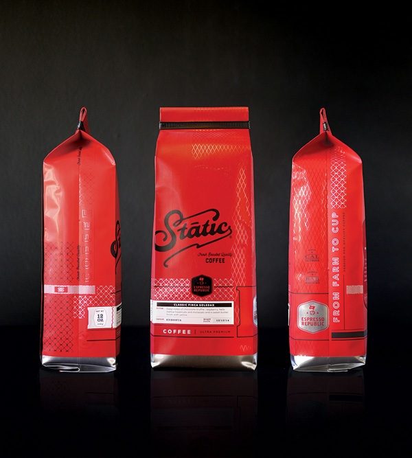 咖啡品牌 ESPRESSO REPUBLIC 近日推出了一款全新 Static Coffee,并邀来美国设计工作室 FARM Design 为其进行包装设计。FARM Design 采用棕色与红色作为两款包装袋底色,并为每款包装袋加上缝制的白色标签,加之烫金式细节设计,旨在凸显其高端品质。