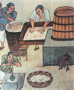 用来做酒曲的原料很多,最常见的有大麦和小麦,酿酒的主料通常是糯米和黏米(大黄米,现在北方还用来做年糕)。水烧开几次再煮熟洗净的米,为的是杀菌,加入酒曲静置发酵,结束后沥酒而出,混着米粒一起喝,跟现在的醪糟形态很相似。
