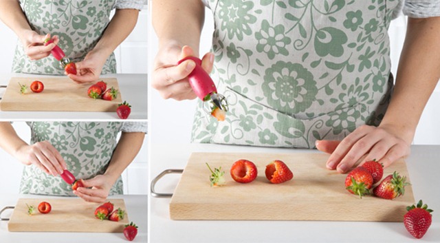 看到这个东东另小编我迟疑了好久,请问大家是怎么吃草莓的?难道不就是把绿色的尾巴去掉后直接扔进嘴里么?!难道外国人吃草莓都这么变态的?!好吧,我宁愿相信她们是为了做果盘才这样。