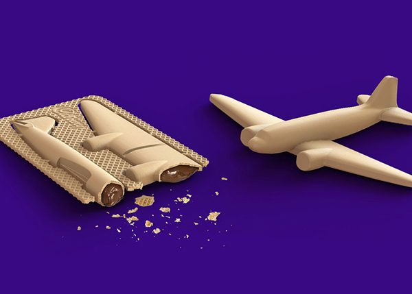 7 月 2 日,设计师 Robert Cooper 在伦敦举办的 New Designers 设计展上,带来了他和著名糖果品牌 Carbury(吉百利)合作的创意夹心巧克力。它的表面是一层脆脆的薄饼,里面则包裹着巧克力,共有飞机、恐龙、赛车和马四款不同的形状可选,每款皆可拼成一个立体小模型。