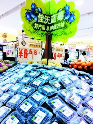 在BHG精品超市,125克佳沃蓝莓价格只有9.8元,而华润OLE的价格更低,只有8.8元/盒,据现场的促销人员介绍,就在一周前,这样一盒蓝莓的售价还是17.8元。“降得是挺多的,佳沃这一品牌的蓝莓今年最高的时候卖过每盒23.8元,现在连10元都不到。”BHG的售货员反映称。