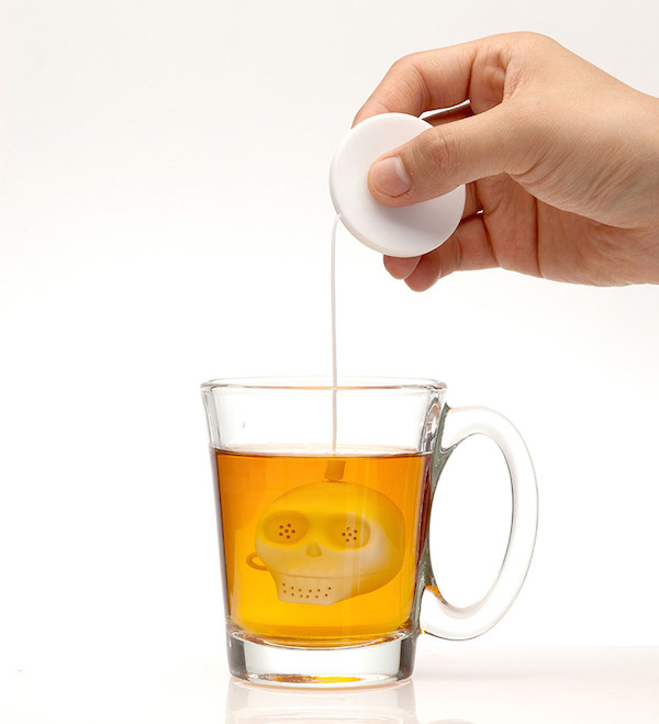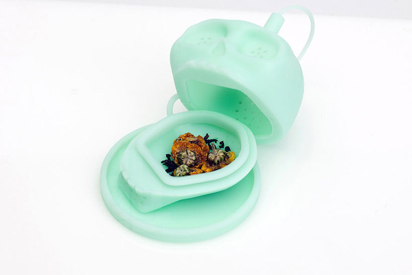 的顿悟故事。这个韩国制造的茶包采用 100% 符合食品安全的硅胶制成,茶包线穿过头骨和下颌,可以让茶叶呆在头腔内不会泄露出来,而眼眶、嘴部以及头骨后面的小孔可以自然渗透出茶味。