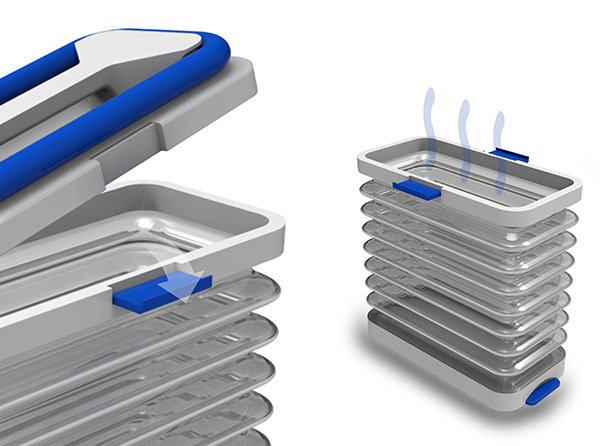 Bellows Bottle 是一款可折叠的运输箱,主要用于运输液体。手风琴式的箱体结构让它可以充分展开,装入更多的液体;倒出时也很方便——往下压箱体、让液体从连接的管口溢出即可。闲置时,Bellows Bottle 占地很小,便于收纳整理。这件简洁而实用的概念作品由设计师 Yunjo Yu 和 Seonghyun Kim 携手带来。