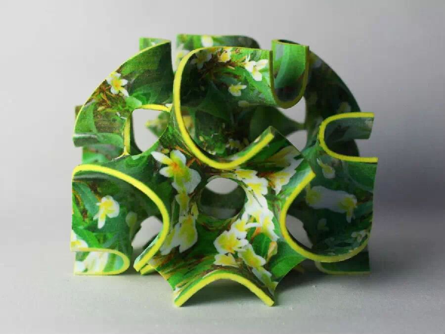 3D食品打印机得到的最终产物具有优美的几何形状,特别是用全彩打印机ChefJet Pro打出来的,通过特别的配色打出来的产物就像昂贵的瓷器一样。