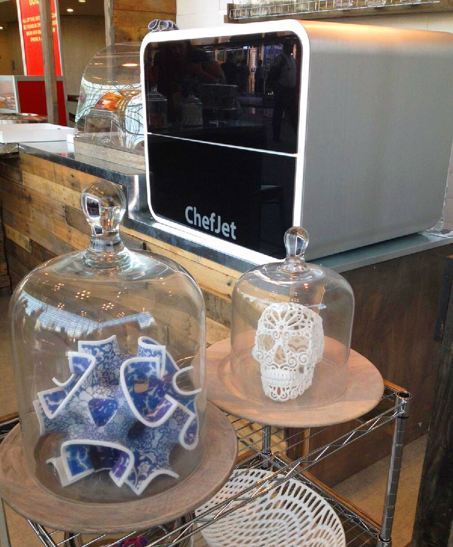 去年,3D Systems 公司收购了糖果实验室(Sugar Lab),von Hasselns也成为该公司的创意总监。今年年底,他们将会发布打印黑白印品的 ChefJet 打印机,以及稍大号的彩色打印机ChefJet Pro,他们的售价从5000美元到10000美元不等。