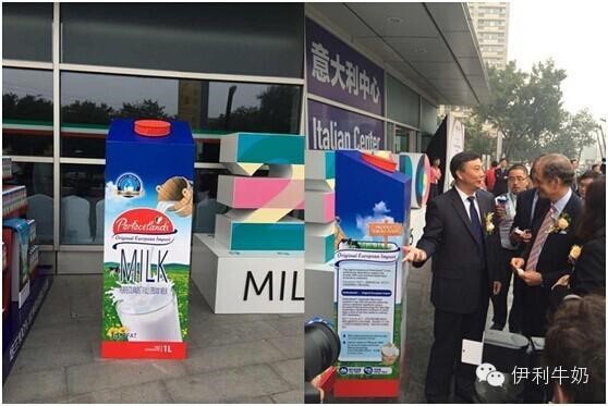 26日,2015年意大利米兰世博会中国官方发布会在北京.意大利中心盛大开幕。会议现场除了巨型的世博LOGO外,一人高的奶盒抢尽了风头,这到底为何物?原来是由意大利斯嘉达公司生产,伊利出品的第一款100%原装进口奶——培兰牛奶,也于当天与世博发布会同步上市!伊利集团还特别将“2015年意大利米兰世博会推荐乳品”培兰牛奶作为礼物送给了意大利大使和各位领导。