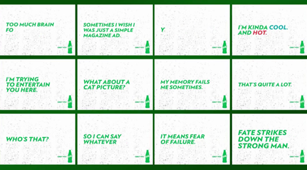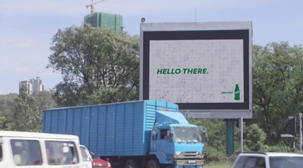近日,在肯尼亚首都内罗毕一个繁忙的交通路口,奥美为雪碧打造了一个名为 Bill 的户外广告牌。Bill 是全球第一款“有个性”的广告牌,它非常健谈,不停地跟往来车辆打招呼、调侃自己,用幽默的口吻巧妙介绍着雪碧的特点,让在路口短暂停留的司机们开心一笑。视频:http://v.youku.com/v_show/id_XODA1OTgxMTg4/v.swf.html