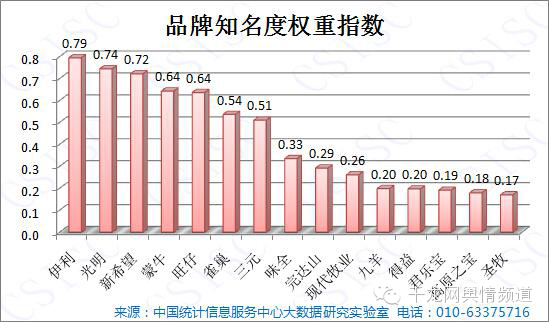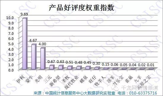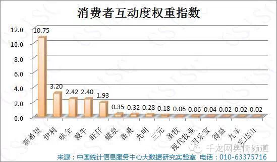 《报告》显示:在消费者互动度榜单中,新希望成绩独占鳌头,受送牛奶、举办冒险活动等的影响,尤其在微博中出现的次数最多。而味全也因微博信息的影响,在本项指标成绩中挤进前三甲。伊利、蒙牛等知名品牌,成绩相对较为稳定,在榜单中名列前茅。