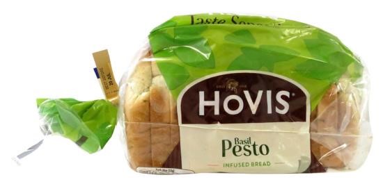 6、Hovis:美味感觉罗勒香蒜酱味面包(英国)。切片白面包中添加了罗勒香蒜酱的味道。