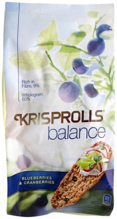 8、Krisprolls Balance:蓝莓和蔓越莓土司(瑞典)。美味的蓝莓和蔓越莓脆瑞典土司。含有丰富的纤维(9%)。全谷物含量60%。每个Krisprolls热量208 kJ (49千卡)。使用精心挑选的配料和来自Krisprolls磨坊的面粉焙烤而成。